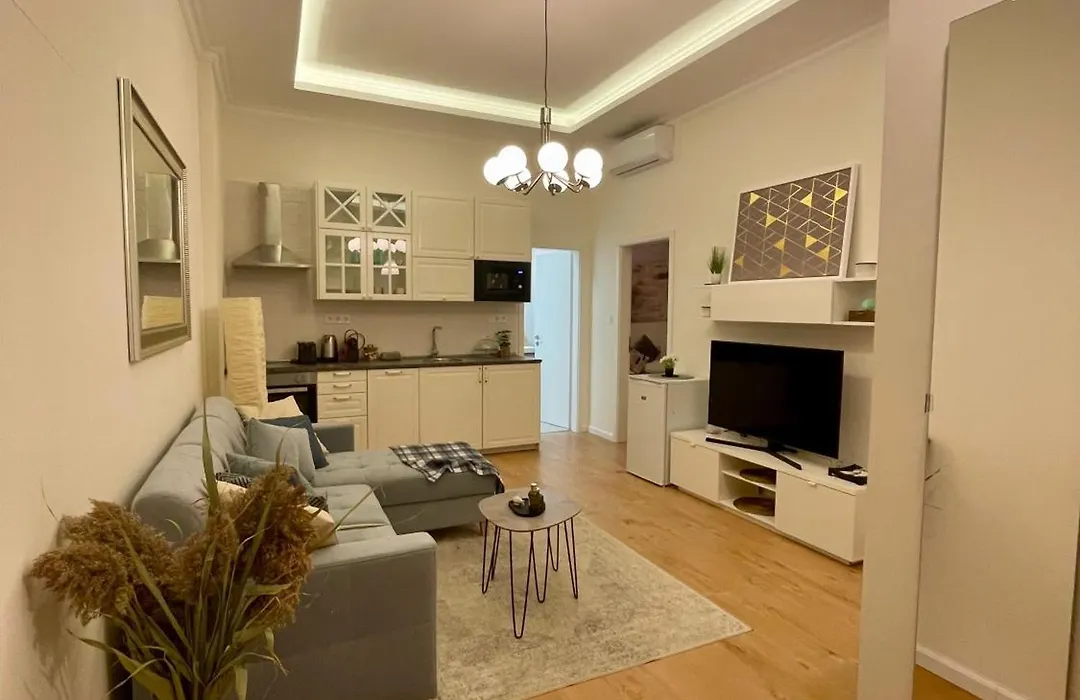Quest'appartamento dispone di un angolo cottura attrezzato con tutti gli utensili necessari per preparare i pasti. La stazione della metropolitana Deák Ferenc tér è a 450 metri, ciò offre un collegamento con zone popolari di Budapest.